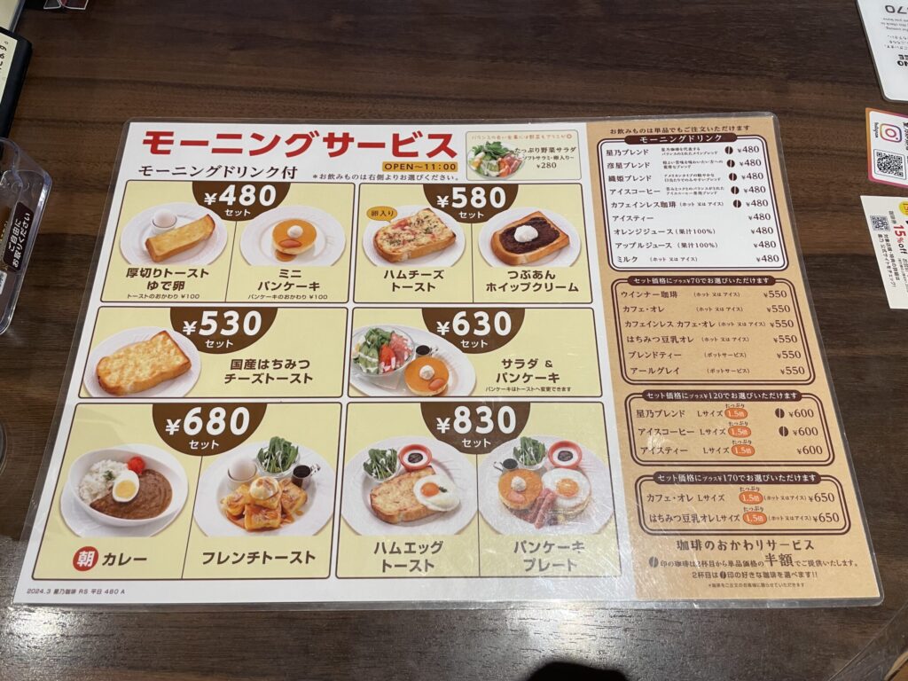 星乃珈琲のモーニングは初利用。